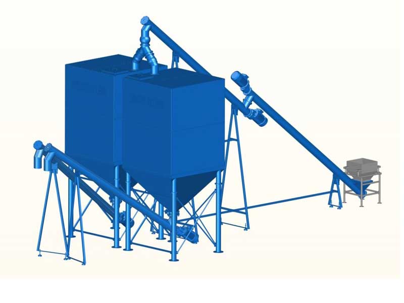 主要組成:石粉儲存罐、垂直提升機、振動篩、輸送螺旋。